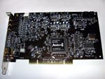 Ähnlich wie bei der Audigy 2 ZS von Creative befinden sich auf der großen Verpackungen lauter kleine Logos von unterstützten Standards bzw. Technologien, welche schon beim Anblick das Herz eines Audiophilen höher schlagen lassen. Kurz aufgezählt: 24 Bit High-Definition Sound, THX, DVD-Audio, EAX Advanced HD, DTS-ES, Dolby Digital EX, ASIO 2.0 und 7.1 Surround-Sound - für den Laien sind die Begriffe Fachlatein, für Kenner eine Wohltat für die Ohren. Die Soundkarte selbst hat drei 3,5 mm Klinkenausgänge, welche bis zu acht Kanäle ansteuern können. Daneben befindet sich der Ad-Link Ausgang, welcher die externe Anschlussbox mit der Soundkarte verbindet. Den FireWire-Anschluss hat Creative auch nicht vergessen und so kann beispielsweise Digitalkamera, iPod oder ähnliches mit bis zu 400 MBit pro Sekunde angesprochen werden. Praktisch: Der FireWire-Anschluss lässt sich auch zur externen Anschlussbox durchschleifen - damit erspart man sich das Kriechen unter den Schreibtisch. Alle Anschlüsse - bis auf den Ad-Link - sind Creative-typisch vergoldet um beste Signalqualität bieten zu können. Die Stromversorgung der Anschlussbox erfolgt über das Ad-Link Kabel, allerdings muss intern an der Soundkarte ein 12 Volt Stromkabel angeschlossen werden. Ein entsprechender Adapter ist auch im Lieferumfang enthalten.