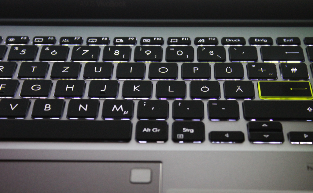 Das Deutsche Tastaturlayout des ASUS-Notebooks ist angenehm in der Benutzung.